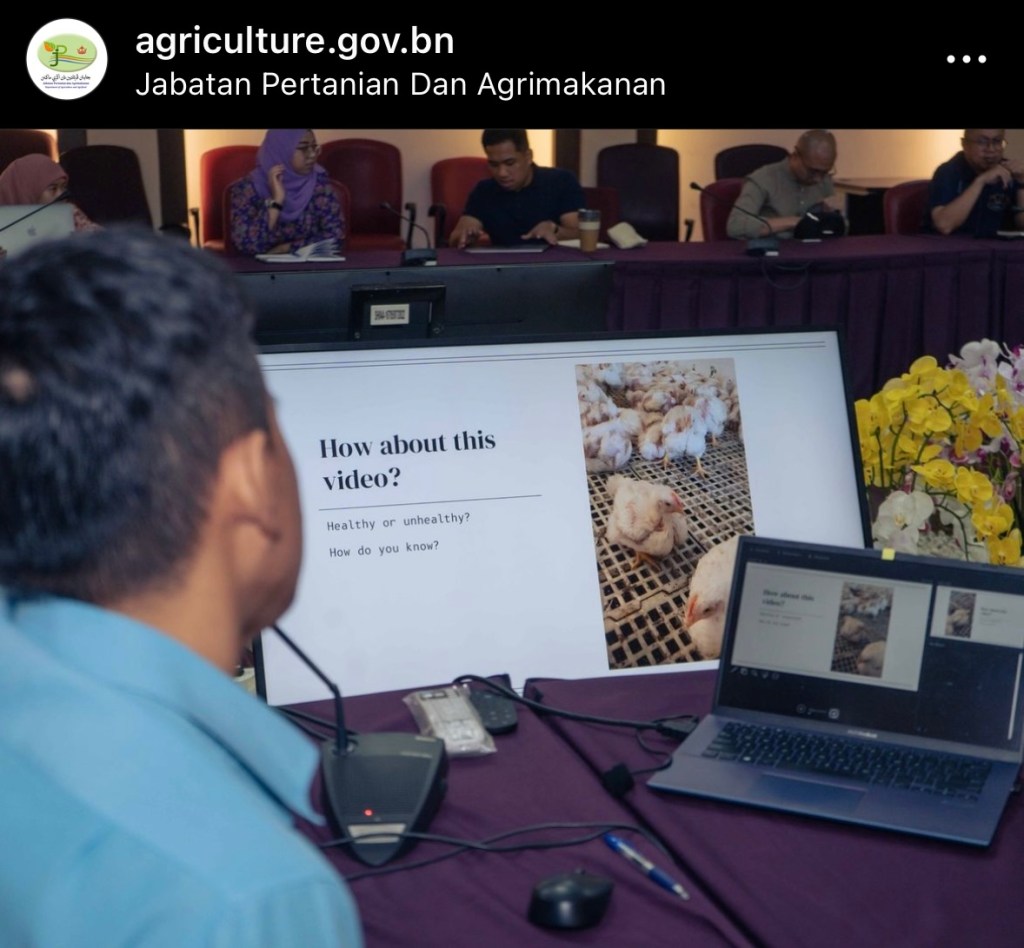 Saya berkesempatan untuk mengisi pelatihan mengenai perhitungan FCR dan IP di negara Brunei Darussalam. Kegiatan ini berlangsung pada tanggal 2 Mei 2023 jam 09.00 waktu setempat di ruangan permai jabatan pertanian dan agrimakanan. Kegiatan ini dihadiri oleh ketua-ketua jabatan, seksi, unit hingga pegawai-pegawai lapangan di ranah jabatan pertanian.