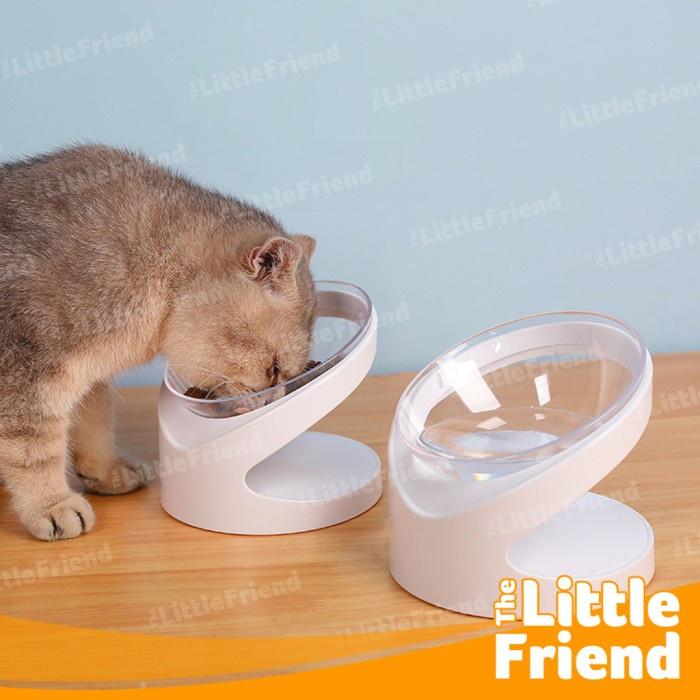 Mangkuk kucing disarankan untuk ditinggikan sekitar 10 – 15 cm dari lantai. Namun, hal ini harus disesuaikan dengan jenis serta usia kucing. Cara mengukur yang paling tepat yaitu dengan mengukur ketinggian pundah mereka saat posisi makan. Seharusnya akan sejajar dengan pundah mereka sewaktu mereka. Jika perlu, kemiringanpun perlu menjadi perhatian. Mangkuk makanan yang miring beberapa derajat memberikan kemudahan bagi kucing untuk memakan makanannya.