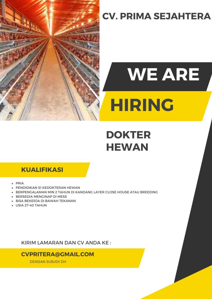 DokterHewan.Org – Amalia Safitri, accounting supervisor di CV. Prima Sejahtera membuka lowongan kerja untuk dokter hewan. Informasi ini di upload di halaman LinkedIn-nya. Berikut adalah kualifikasi yang dibutuhkan: