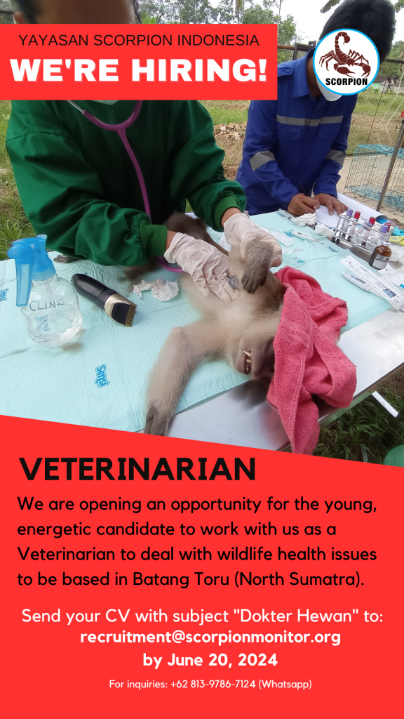 Pelamar yang tertarik dapat mengirimkan CV ke recruitment@scorpionmonitor.org dengan subject “Dokter Hewan” paling lambat 20 Juni 2024.