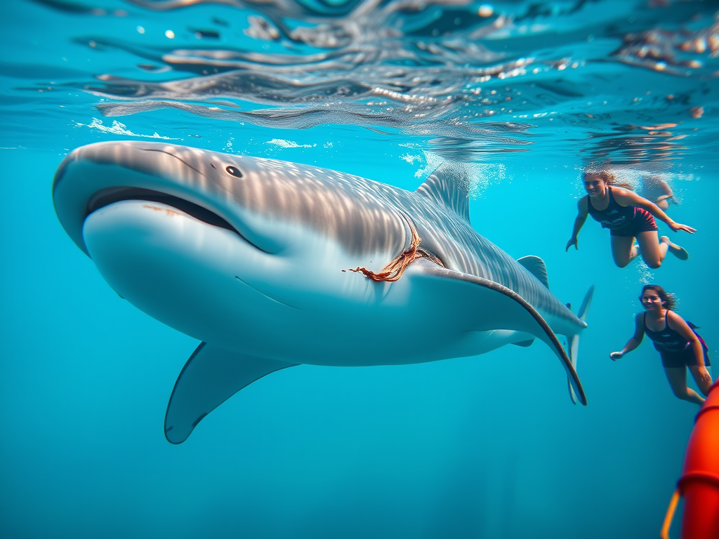 Banyak hiu paus mengalami luka di tubuhnya karena terkena baling-baling atau tersenggol perahu saat mendekati pemberi umpan. Luka ini bisa meninggalkan bekas permanent dan membuat mereka stres.